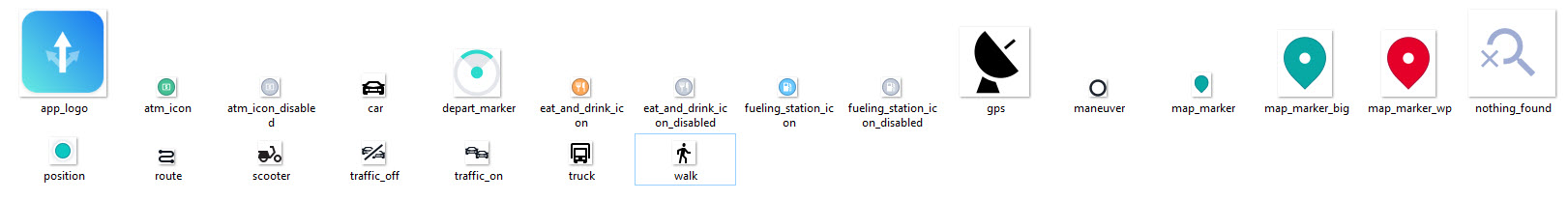 The reference application also contains a variety of other icons, such as map markers, to get you started quickly with your own application.