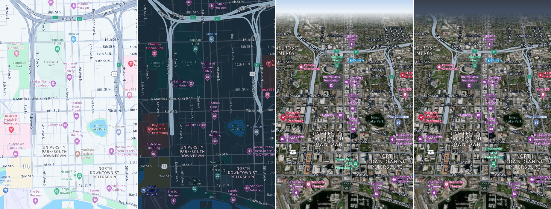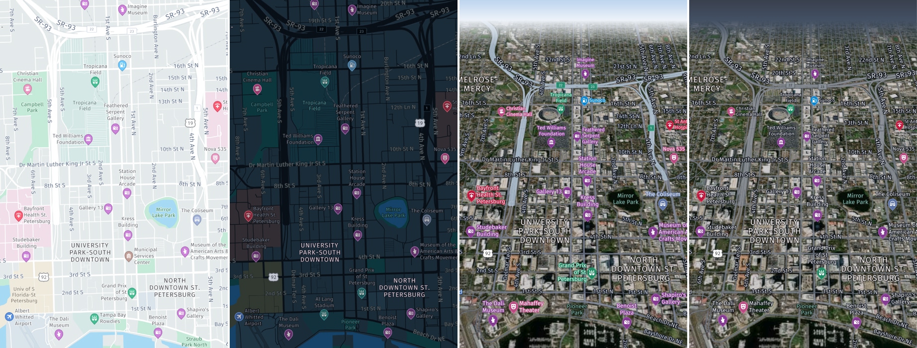 From left to right: MapScheme.liteDay, MapScheme.liteNight, MapScheme.liteHybridDay, MapScheme.liteHybridNight