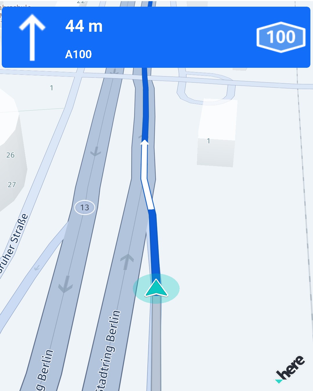 Each new location event results in a new NavigableLocation that holds a map-matched location calculated based on the original GPS signal that we have fed into the VisualNavigator. This map-matched location can then be consumed to update the map view.