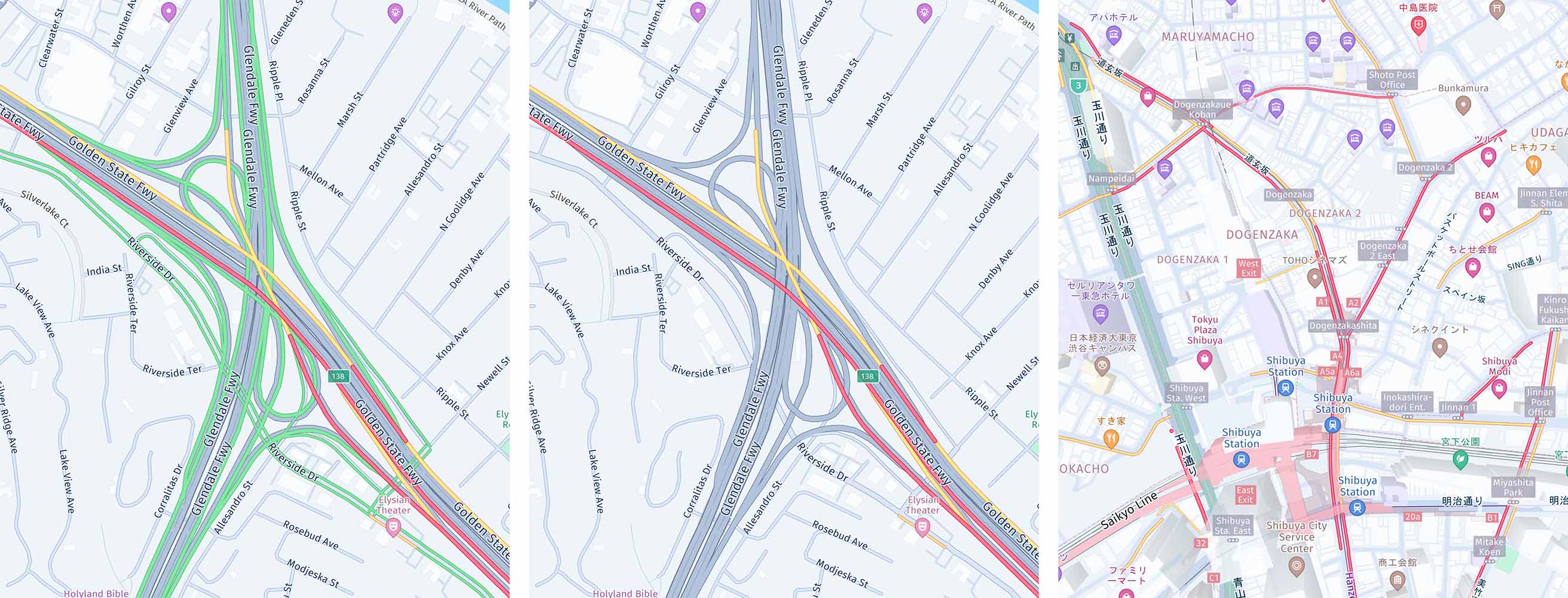Below you can see screenshots for all map layers supported by the HERE SDK - note that not all feature layers are available for all licenses: