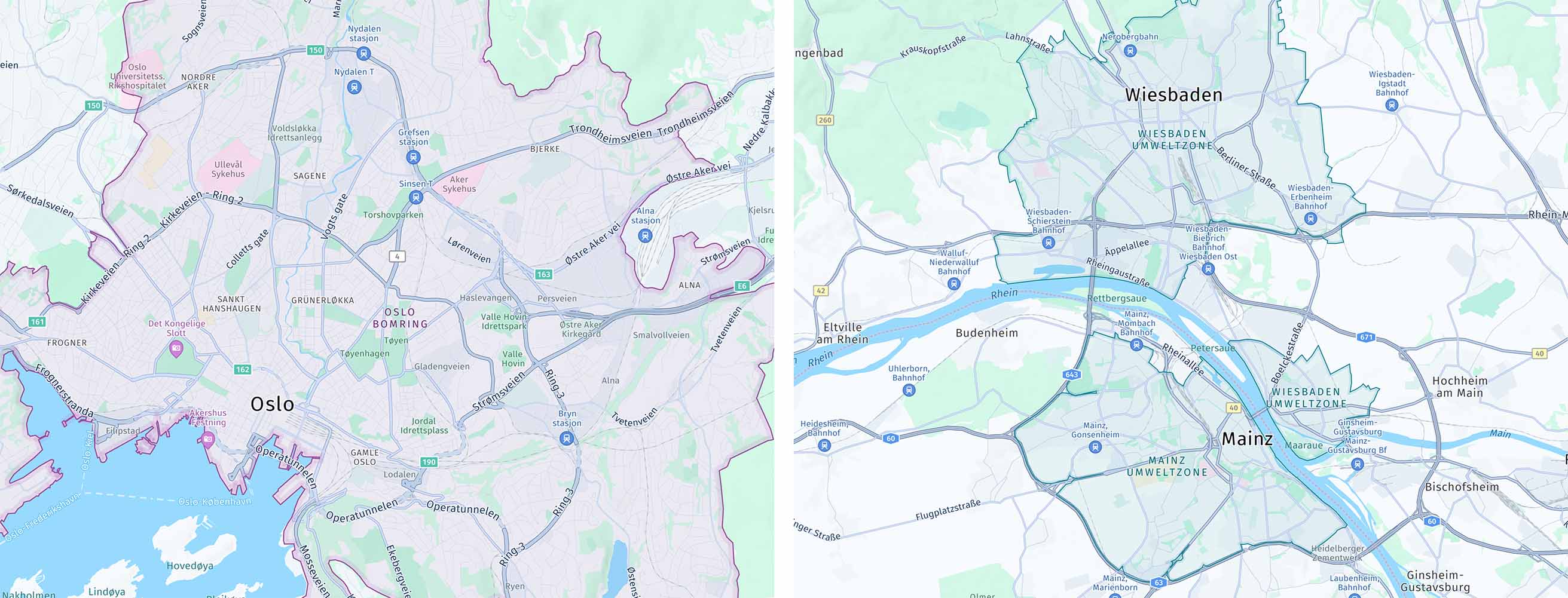 | environmentalZones | City areas designated as environmental zones, which empose limitations on the type of vehicles that are allowed to enter such areas. | Yes | Yes |