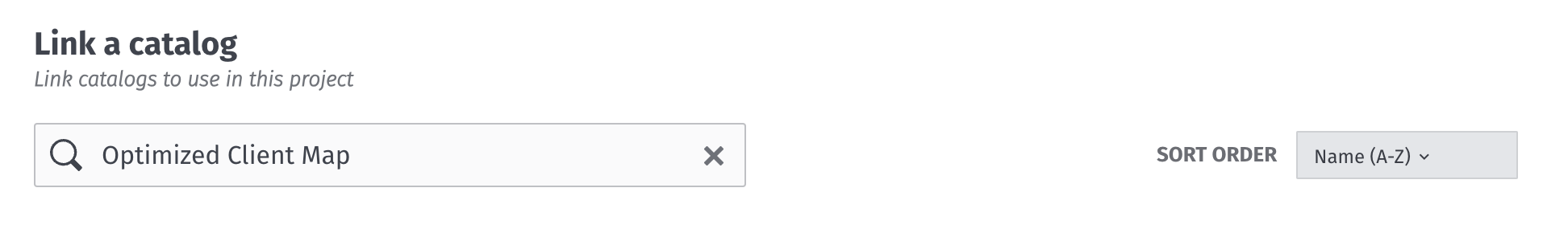 Select and link the catalog "Optimized Client Map" like shown in the screenshot below (Resources -> Catalogs -> Add catalog -> Link a catalog).