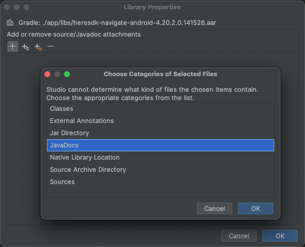 As an example, for Android Studio, you can link the HERE SDK AAR to the JavaDoc file like so: