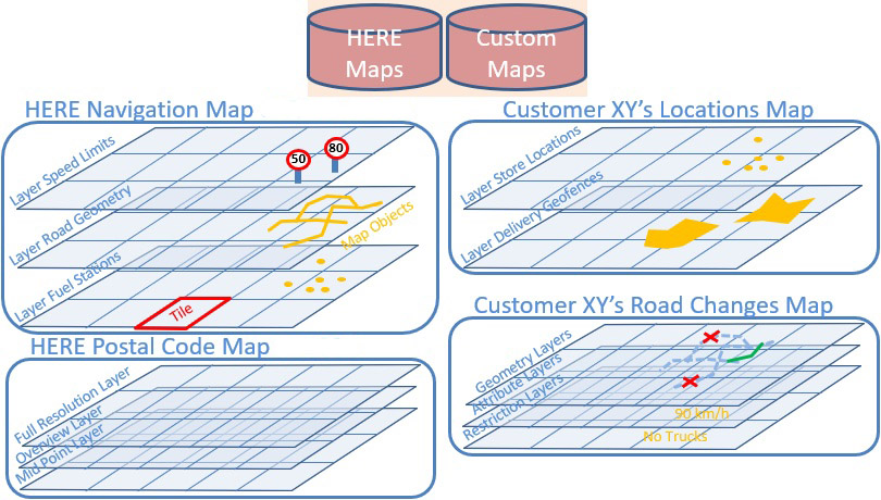 The creation of custom map catalogs - for example, with your custom road geometry or POIs - requires HERE support and an additional agreement with HERE. Please contact your HERE representative for more details.