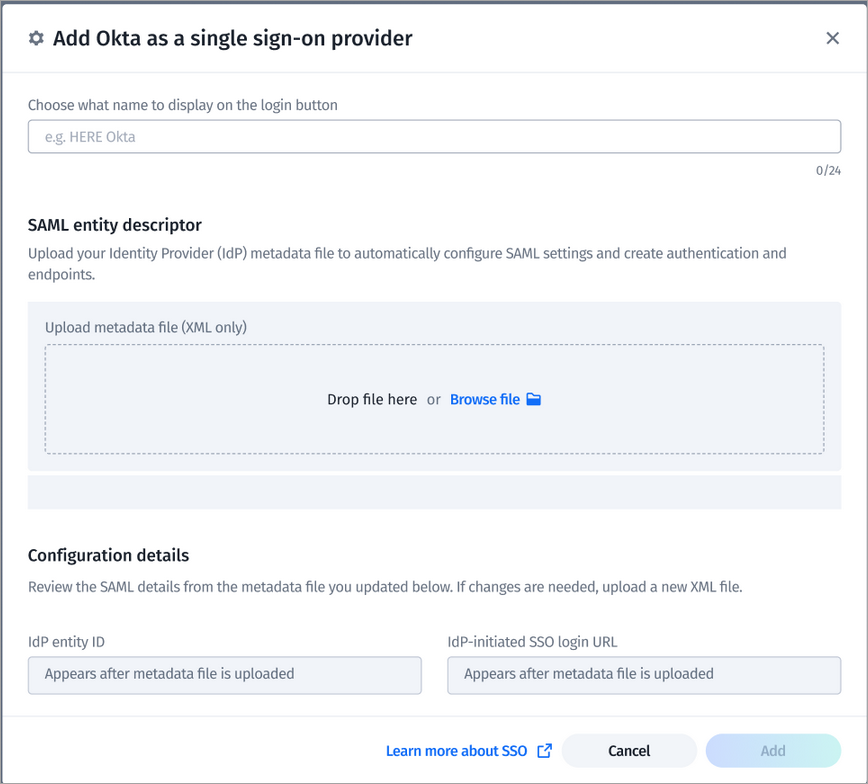 HERE supports SSO integrations using the SAML 2.0 protocol.