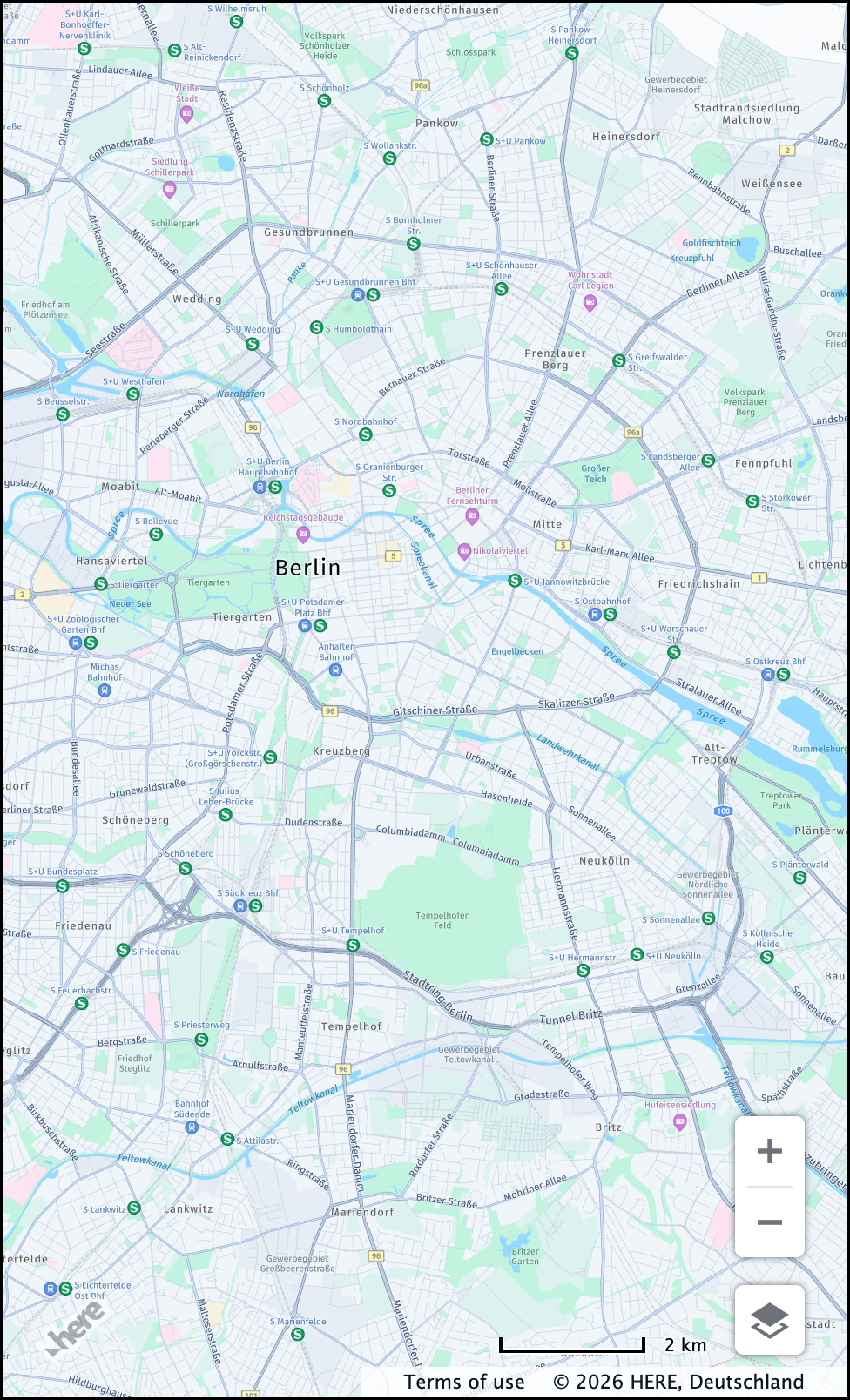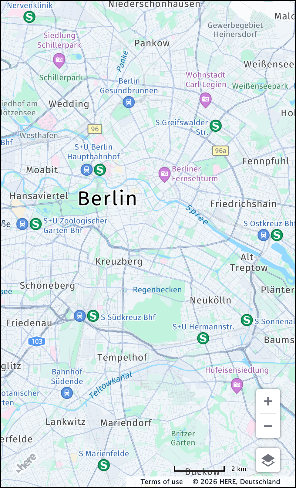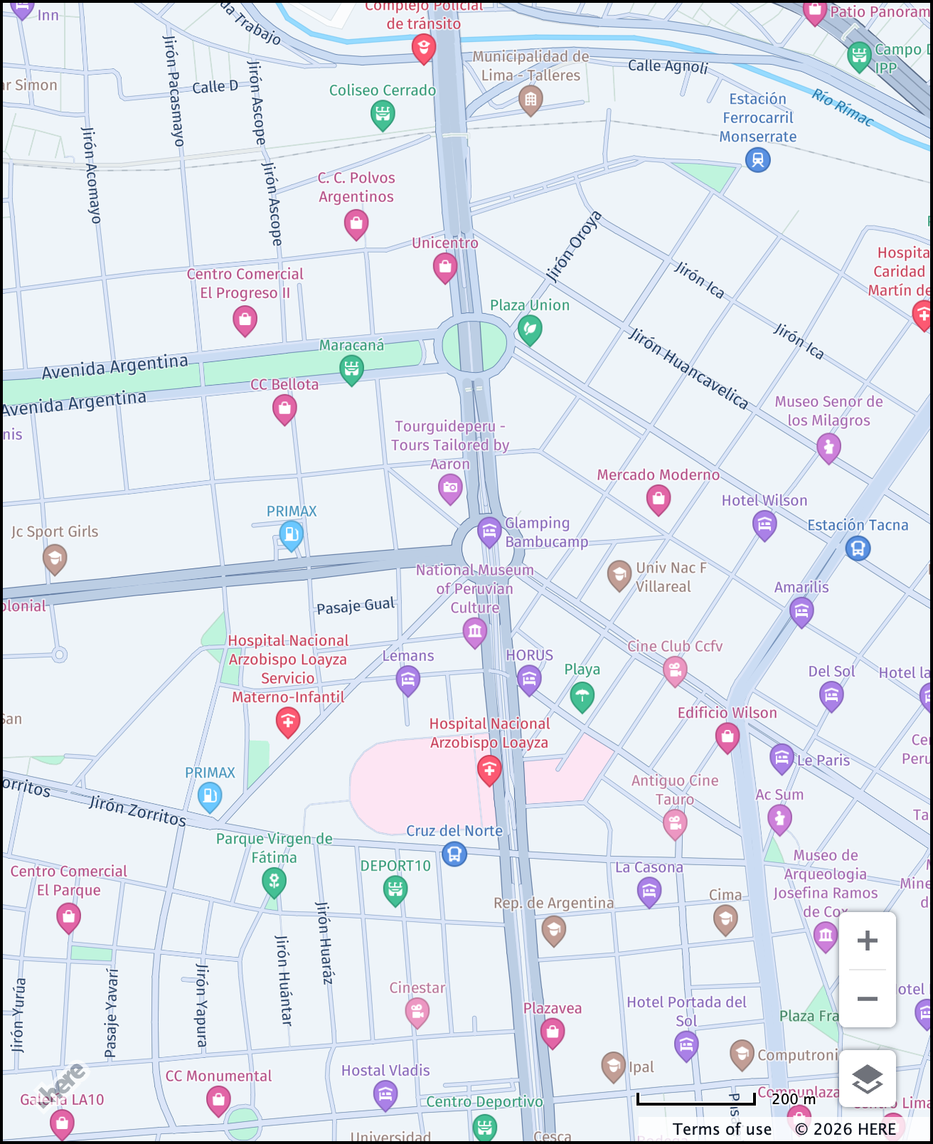 By default, the HERE Maps API for JavaScript displays map labels in each country's local language, depending on the data availability. The labels for ocean, sea, and bay features are shown in the language of the country a specific water body is adjacent to. However, you can localize labels and place names with the following options: