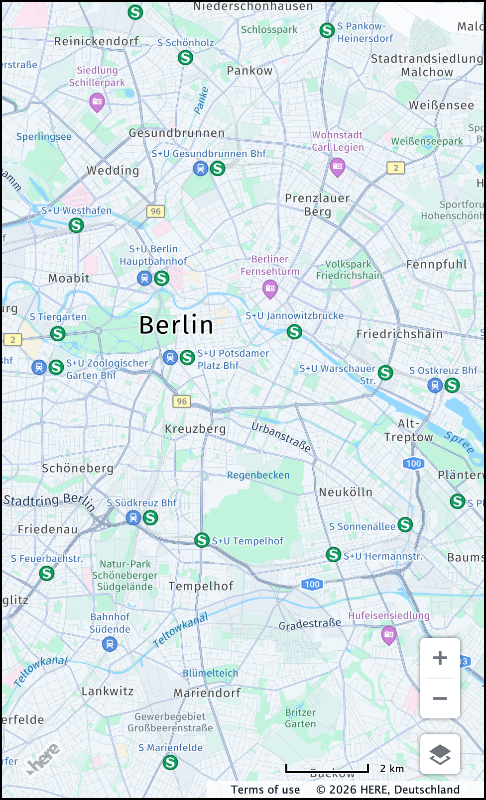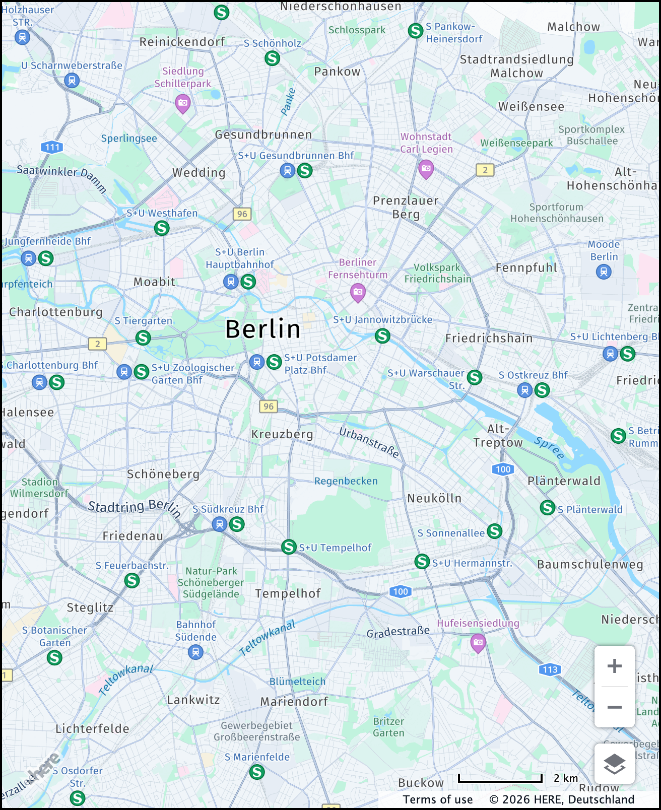 lg: Sets the primary language for map labels. The parameter accepts the two-letterISO-639-1language code, for example,frfor French.lg2: Sets the secondary language for map labels. This parameter follows the same format as thelgparameter and allows you to display an additional label in the specified language.