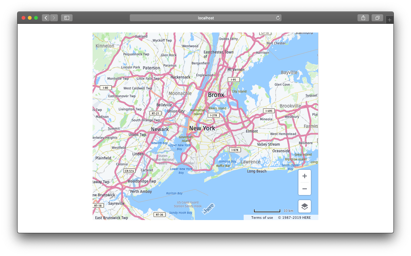 In this tutorial, you will create an interactive HERE Map, using Vue.js and HERE JavaScript API, that can be added to your existing Vue.js application.