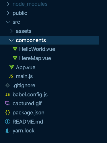 Render the HereMap component in the src/App.vue file.