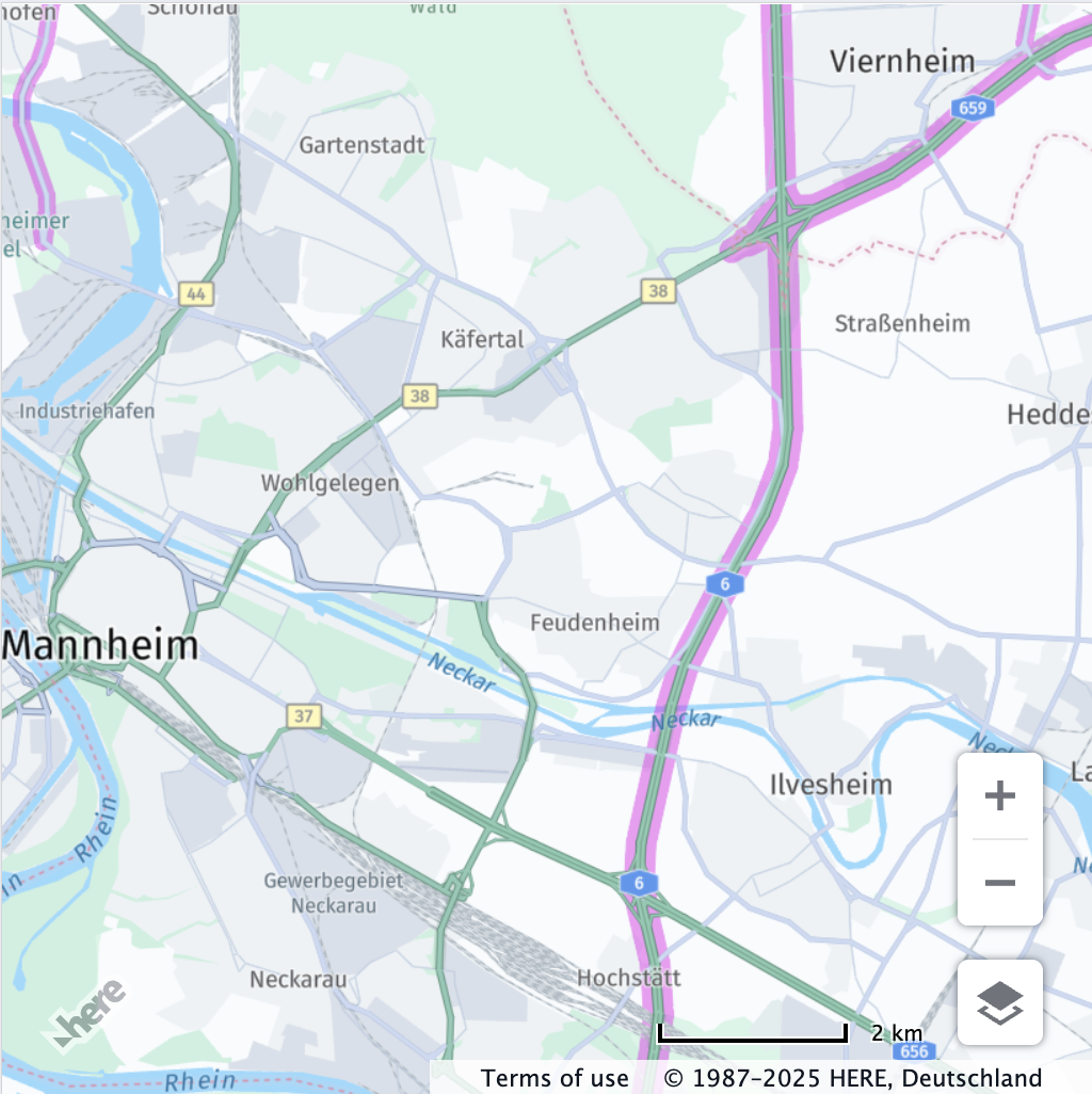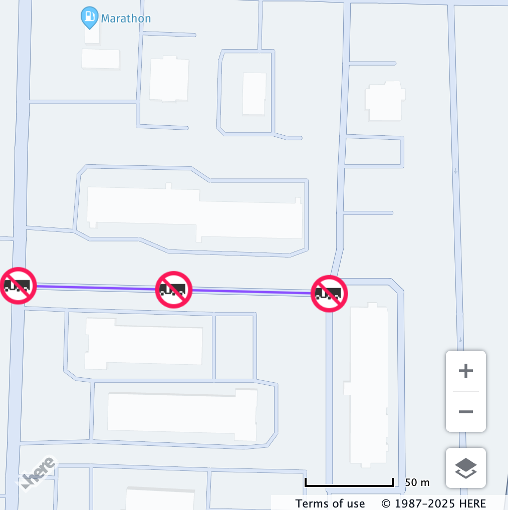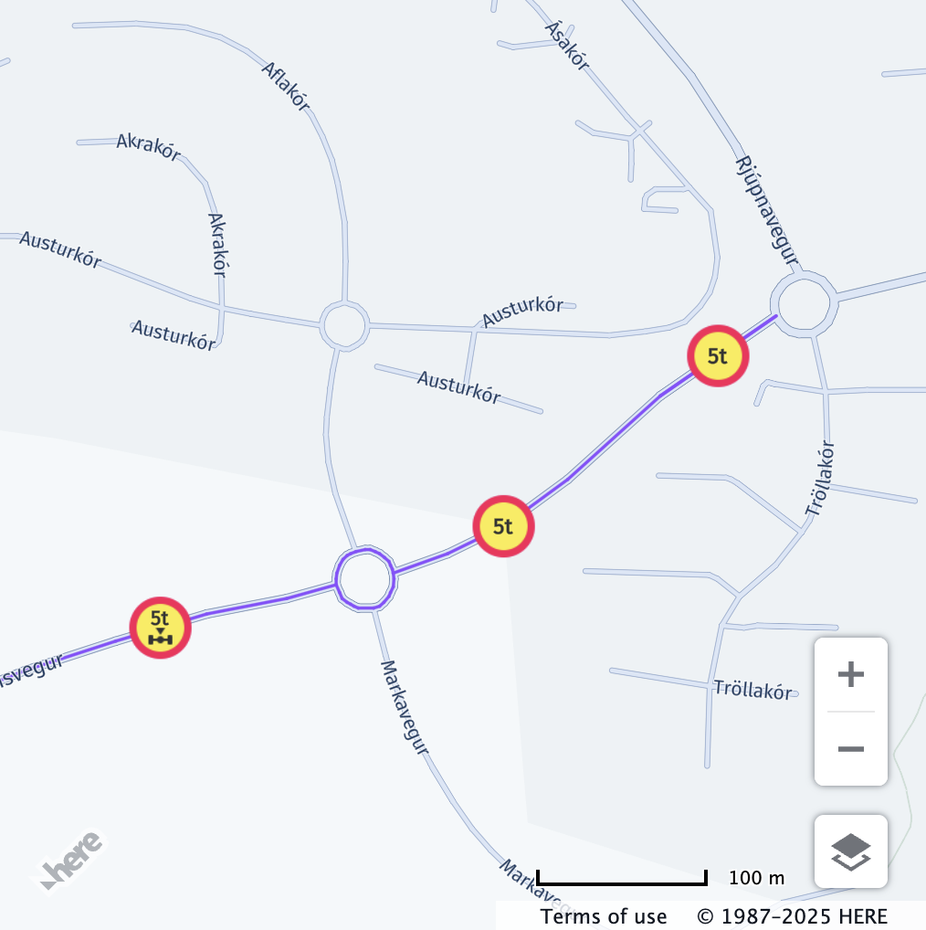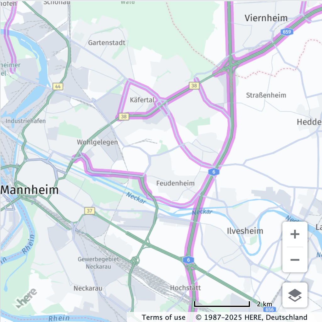 - Vehicle Profile API: that uses a configurable vehicle profile. The API ensures that only those restrictions which apply to the defined truck are shown on the map.