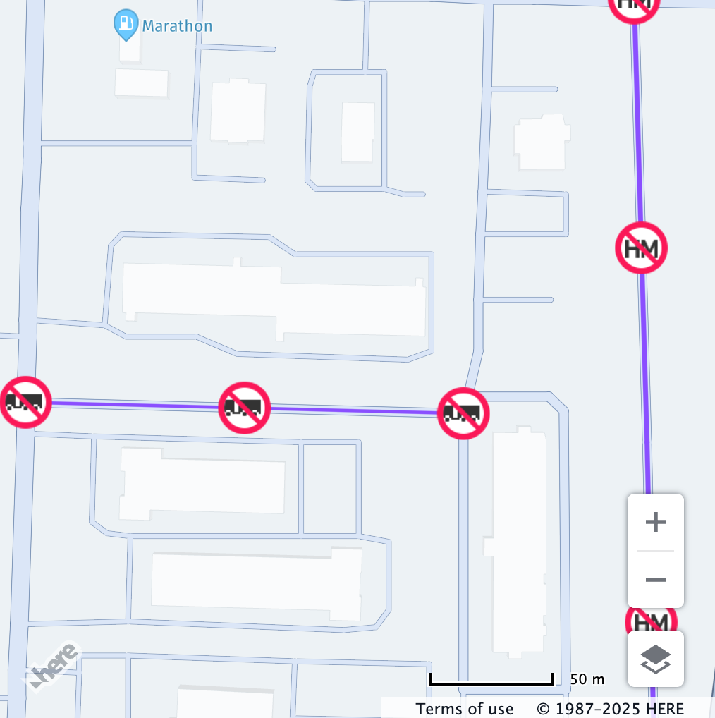 Commercial vehicles especially heavy-duty trucks must comply with various road restrictions related to dimensions, weight, hazardous materials, and tunnel access. These restrictions vary across locations and are often displayed as icons or signs on maps.