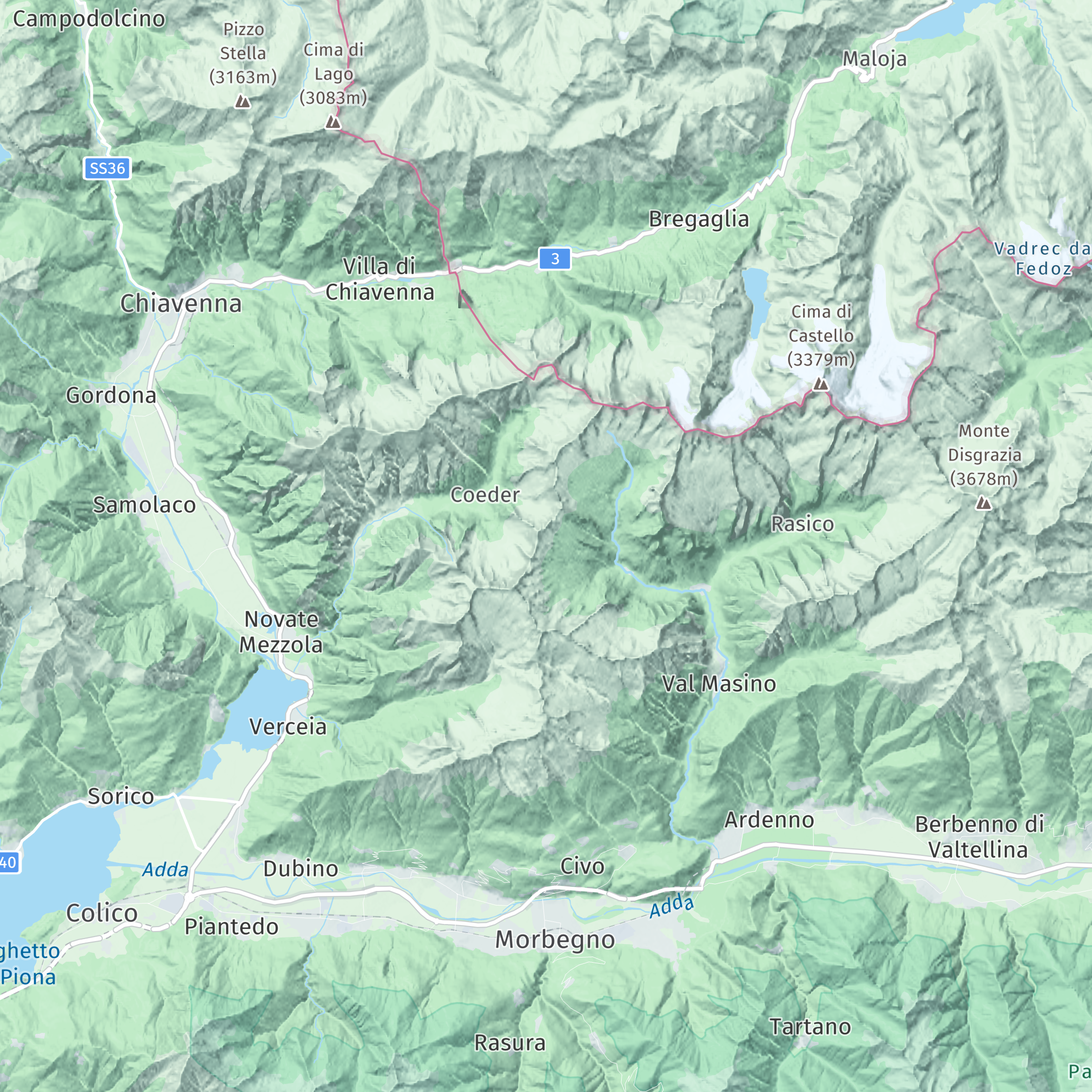The topo scheme highlights geographic features such as elevation, land cover, and natural elements to provide a clear representation of the terrain. It is designed for outdoor activities such as hiking, cycling, and skiing.