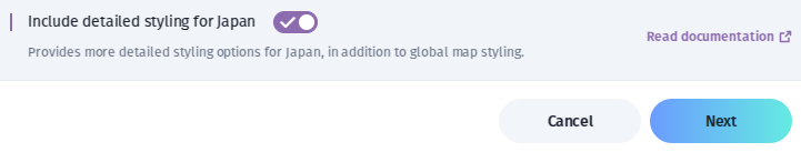 Japan specific styling is enabled as part of setting up a new map style. The sliding toggle at the bottom of the new map style dashboard turns the Japan specific style details on and off.