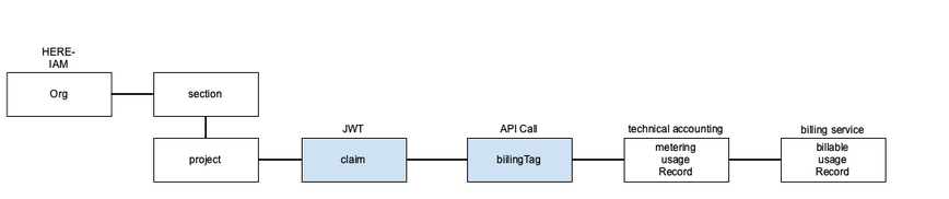 The cost allocation for projects is internal and is independent from user-defined billing tags. The scope is extracted from the token and used as a billingTag. For example, hrn:here:authorization::org123456789:project/happy-project, as shown in the previous table, where the project, happy-project, is the billing tag.