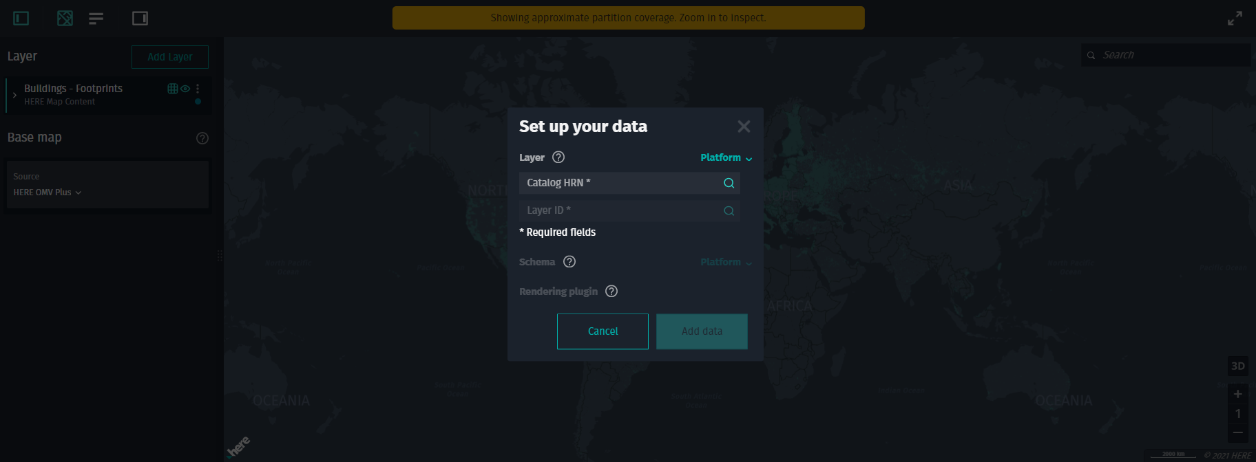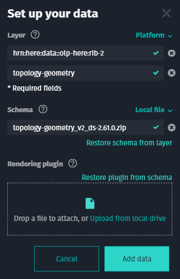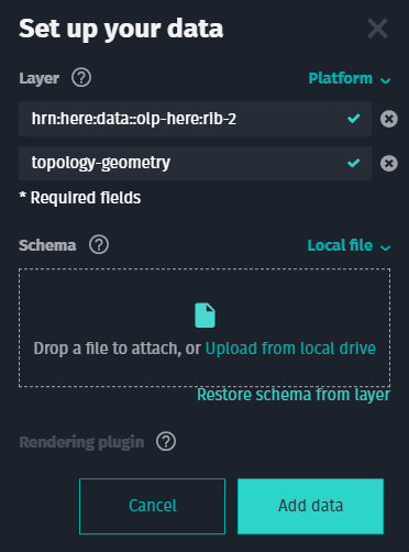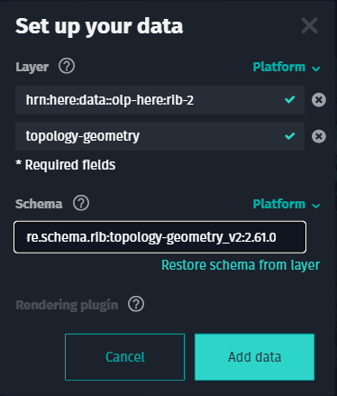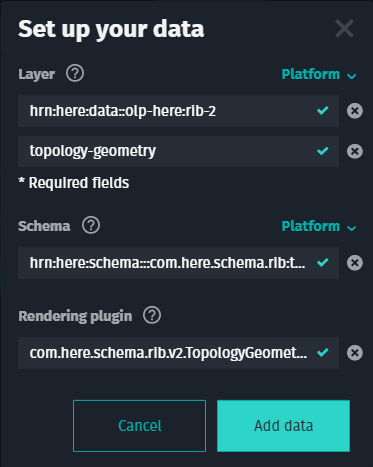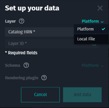 - For Platform, specify the catalog HRN and layer ID.