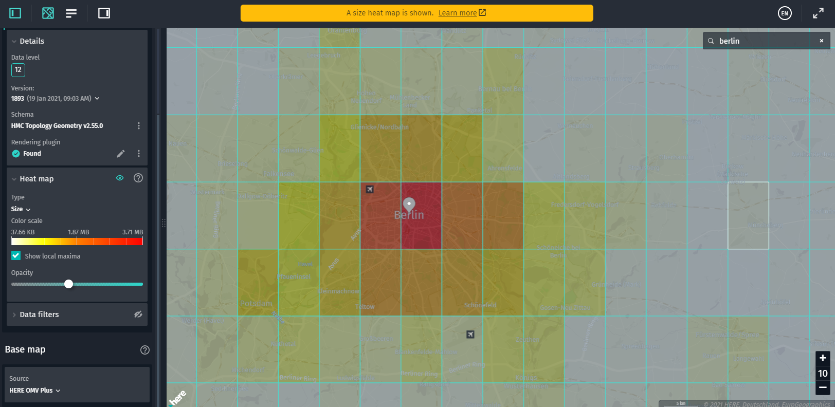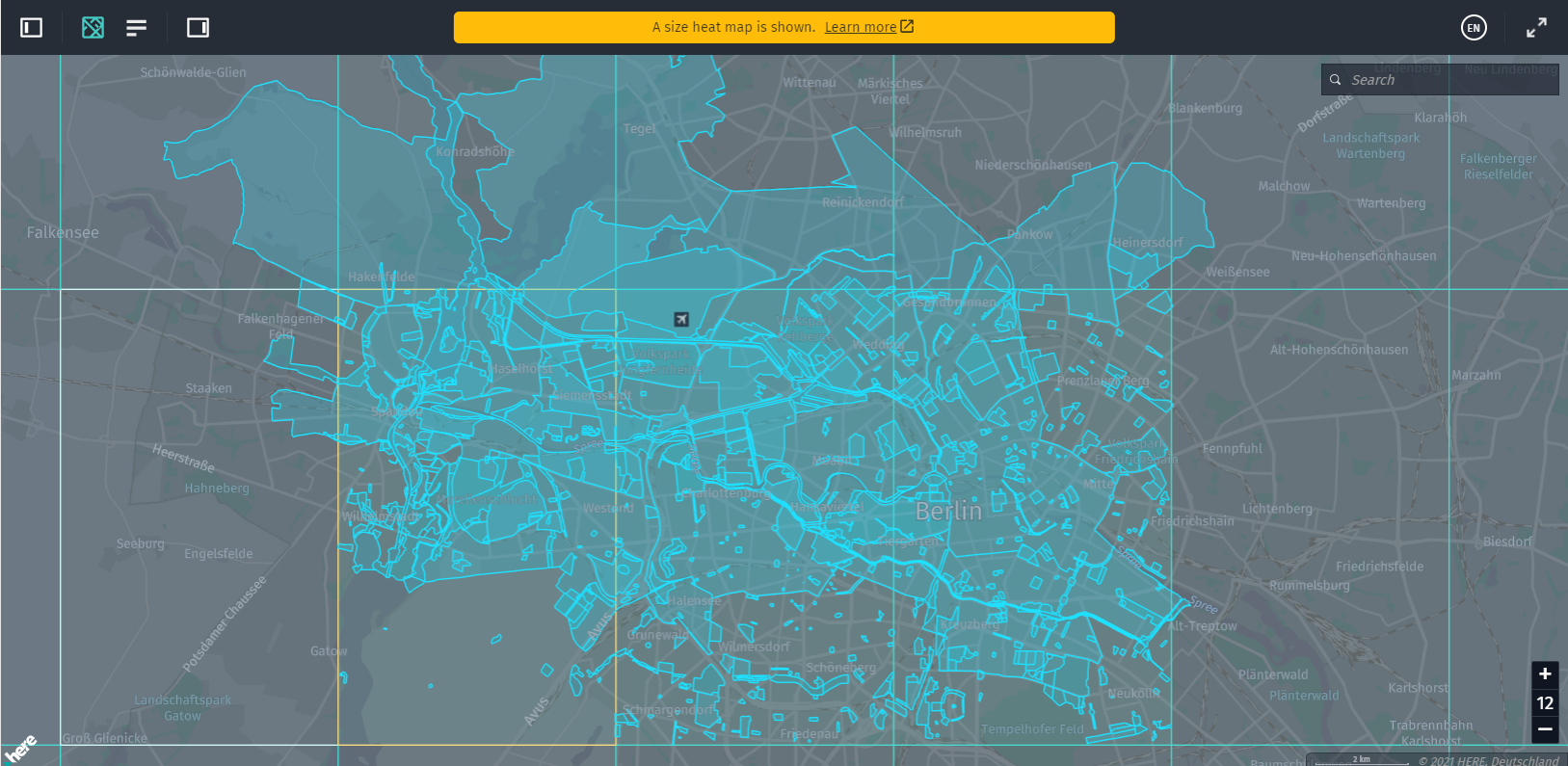 @here/olp-geojson-datasource: A data source that renders GeoJSON data on top of the base map.@here/sdii-datasource: A data source that renders SDII data on top of the base map.@here/coverage-datasource: A special descriptive data source that gives you an insight into the geographic coverage of the data that you load. The coverage is rendered as a tile grid that is overlaid on top of the base map.@here/rib-datasource: A data source that renders highly accurate geo-referenced data from catalogs that use the HERE Map Content schema.