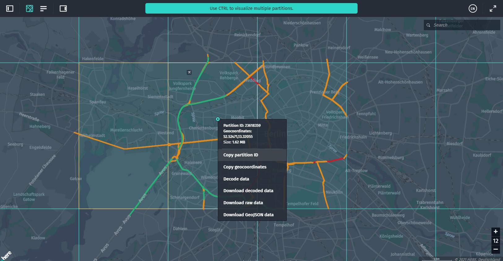 TileMenu: A context menu for a tile that allows copying the ID of the currently selected partition inMapView, decode partition data, view and copy the geocoordinates of the currently selected location on the map. Also, for a selected partition, this menu allows downloading raw data, data decoded with the linked Protobuf schema, and GeoJSON data translated with the rendering plugin.You should create an instance of