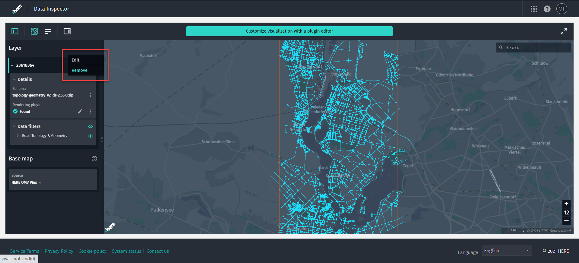 application/geo+jsonorapplication/vnd.geo+json, you can customize visualizations of GeoJSON data through a rendering plugin (highlight features, provide custom icons, apply tooltips, and more). - For HERETile layers that originally have no bundled schema, you can provide your own schemas for data decoding.