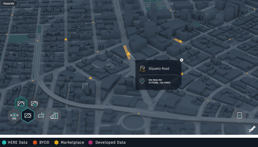 One of the main data sets in the Workspace is the HERE Map Content. It is stored in a set of versioned layers for different types of content, such as roads or buildings.